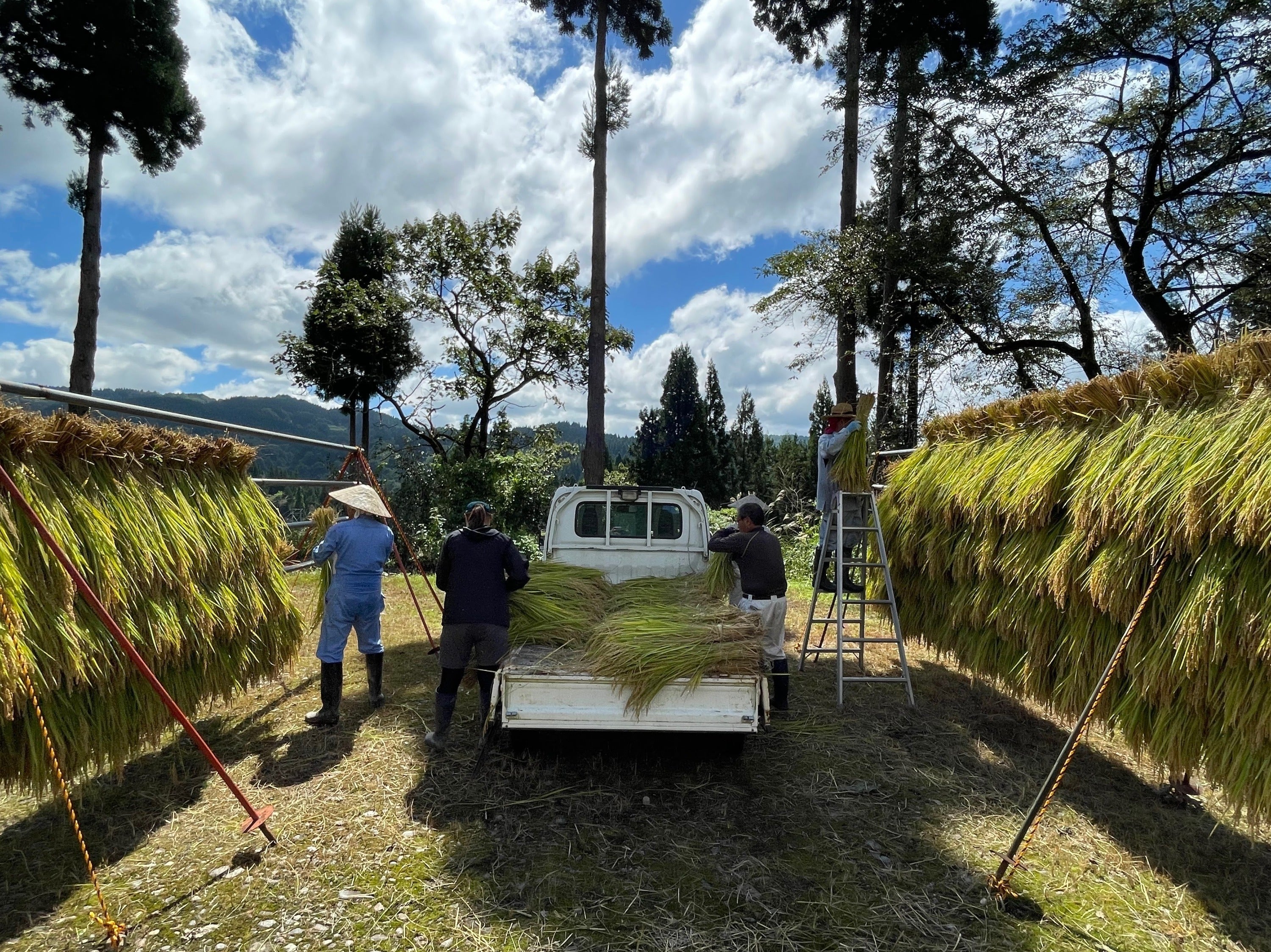 2025/09/28 14:59今週より本格的な稲刈りがスタートしました。コンバインを使った稲刈りの他にも伝統的な「はざかけ」もやっています。皆様の元に届くのはもう少し先になりますが、もう少しお待ち下さい。 もっと見る