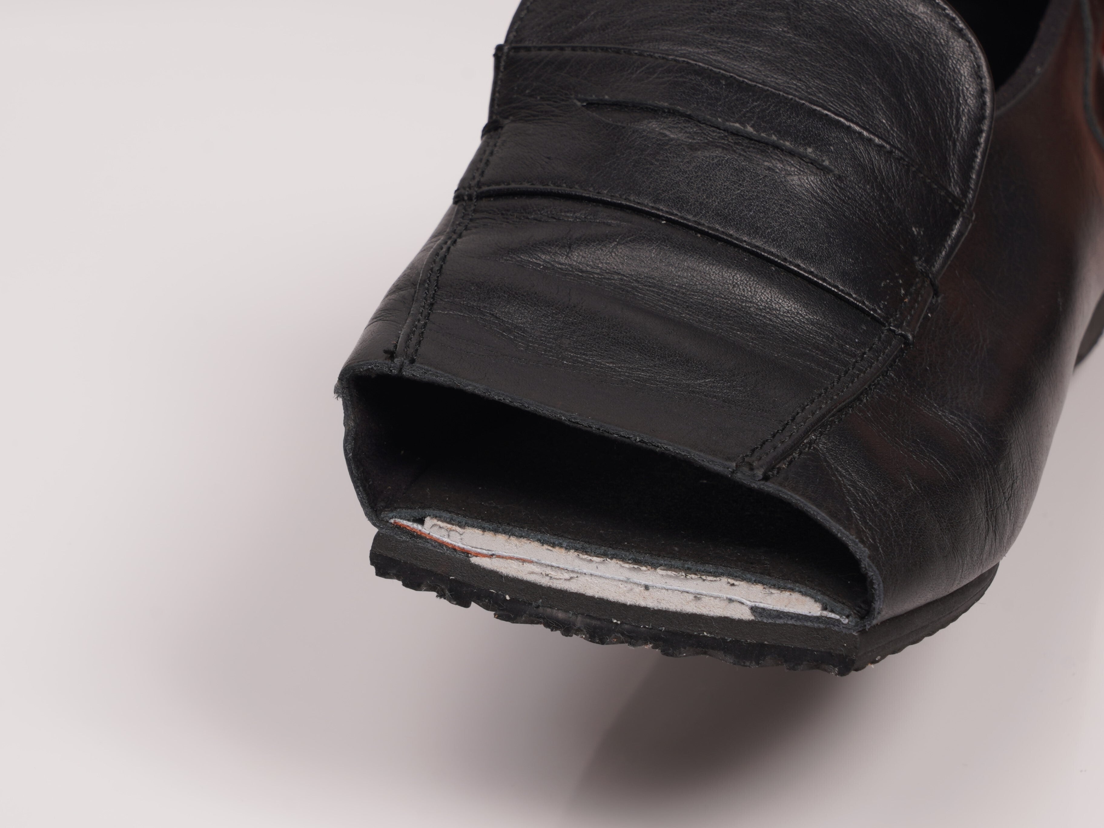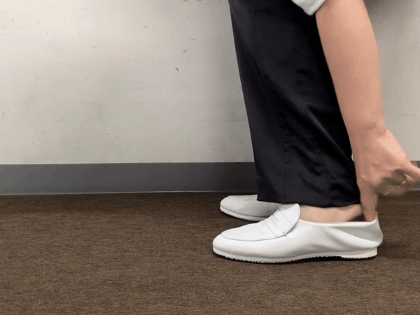甲をしっかりと抑えることによって、フィット感が増し、ローファーでよくある「かかとのパカパカ」を軽減