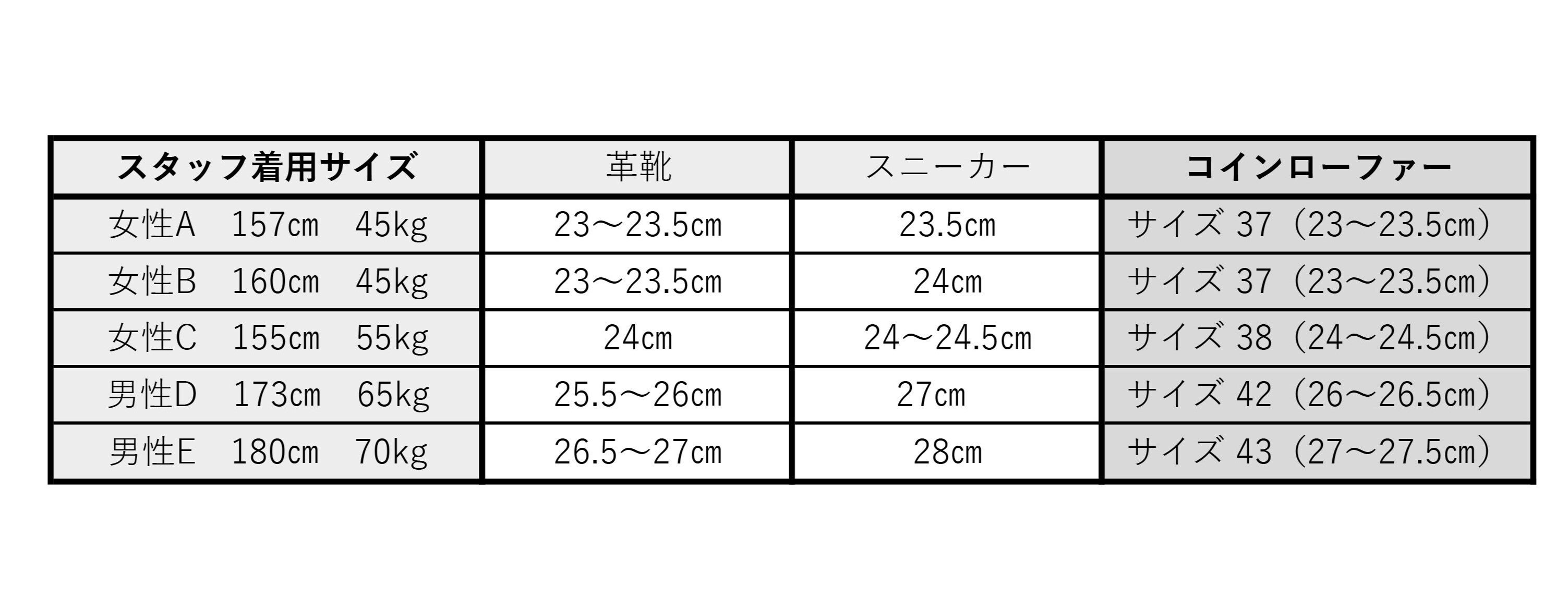 A . 通常お履きの革靴サイズにてご購入頂くことをお勧めしております。お届け後、もし少し小さいと感じた場合でも革が柔らかく数回の着用で馴染んでくることも想定しております。実寸表とスタッフ着用サイズをご参考ください。