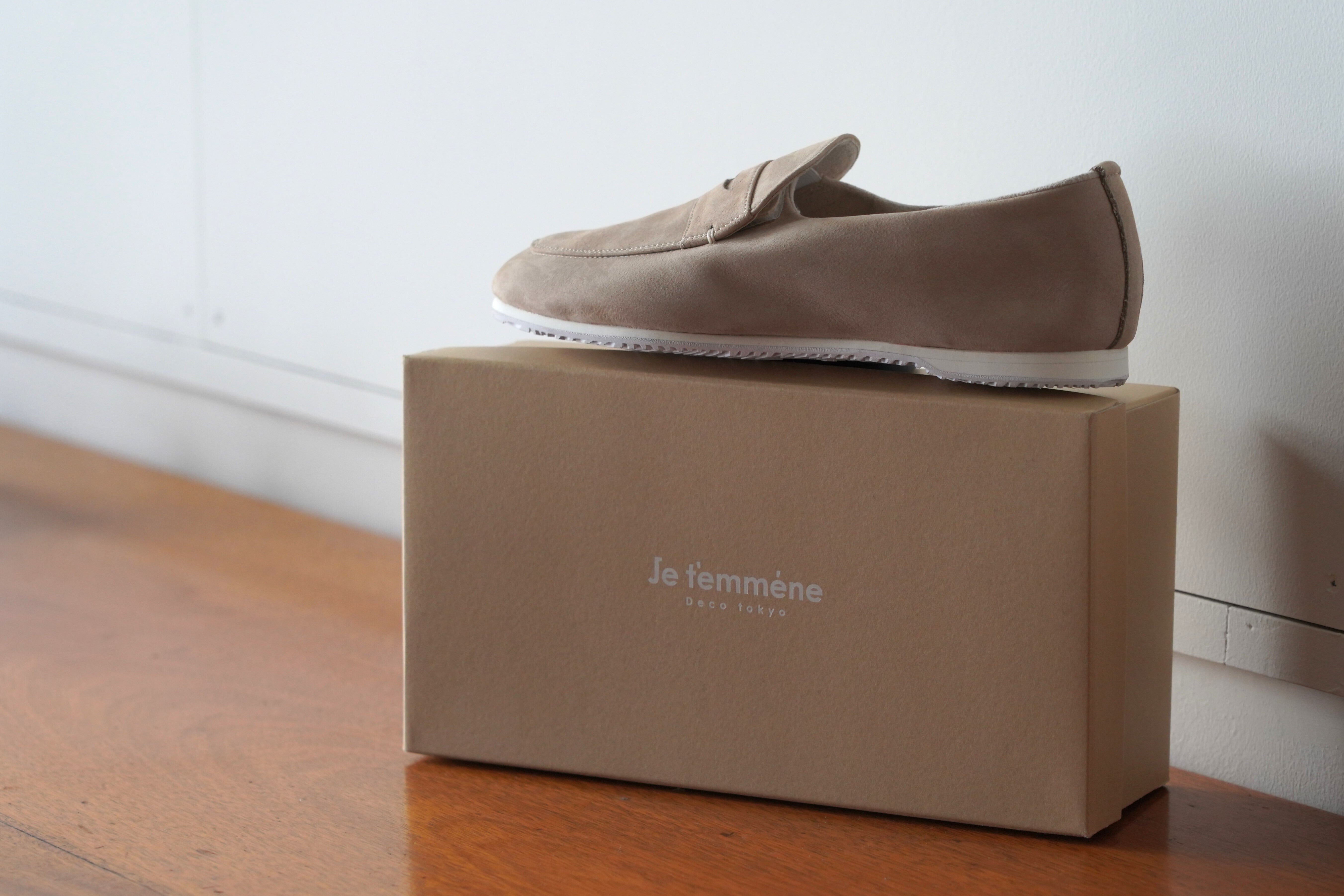 2020年より世界はガラリと変わりました。緊急事態宣言/外出自粛が発出され未曽有の事態となりました。外に行かない=靴を履かないということで、残念ながらこの影響で受注も減りました。とても悲しいことです。友達の電話をきっかけとして販路開拓を視野に、スタッフ一丸となって何度も会議を重ね作り上げました。デコルテの靴をもっと多くの人に届けたい!そんな想いで立ちあげたのが『Je t'emmène』(ジュトメンヌ) です。