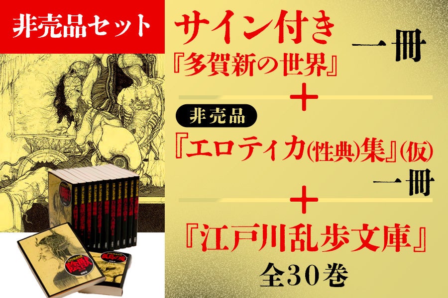 2025/07/26 17:12ご支援いただいた皆さまへこのたびは「多賀新の画集出版プロジェクト」へご参加いただき、心より御礼申し上げます。大変お待たせいたしました。下記のリターン品につきまして、発送の準備が整いましたのでご案内いたします。・画集『多賀新の世界』1冊・非売品『エロチカ集』1冊上記以外のリターン品(書籍/乱歩グッズ/銅版画/鉛筆画/EXLIBRIS 等)を含むご支援をいただいた方には、8月以降、順次発送を予定しております。今しばらくお待ちくださいませ。引き続き、プロジェクトの進捗や関連情報は随時ご案内してまいります。今後ともどうぞよろしくお願いいたします。春陽堂書店 もっと見る