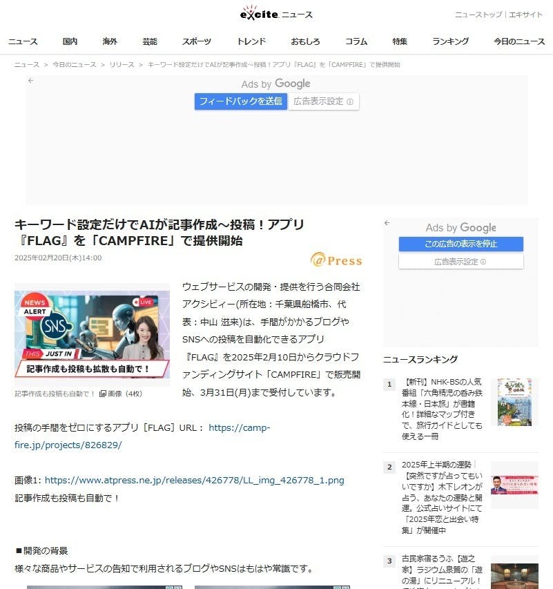 続々とメディアの注目を浴びている自動投稿アプリ「FLAG]です。