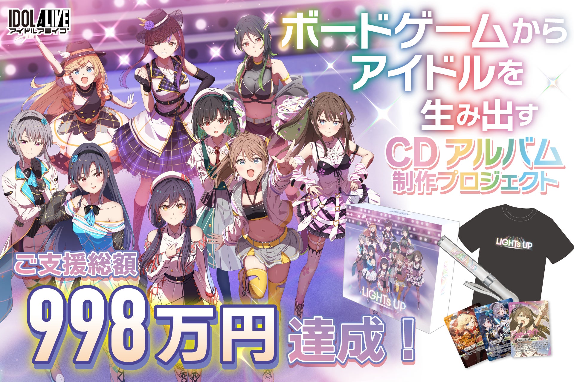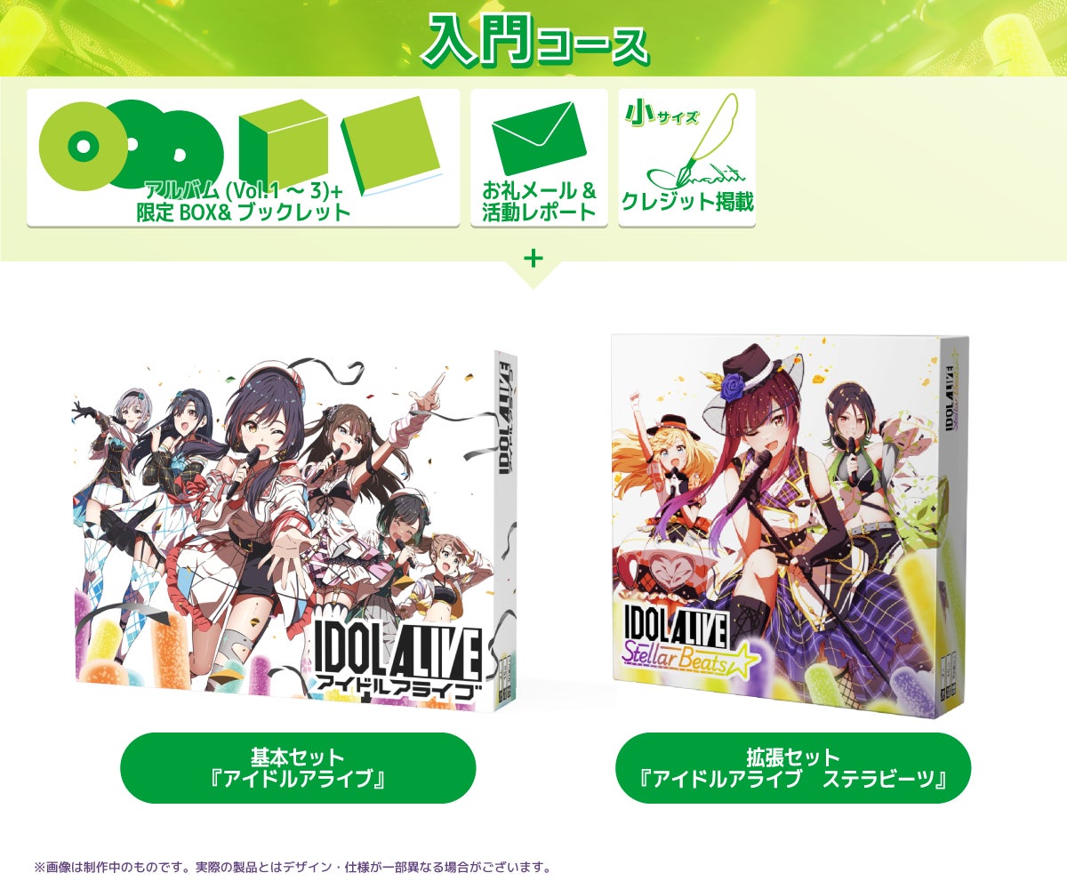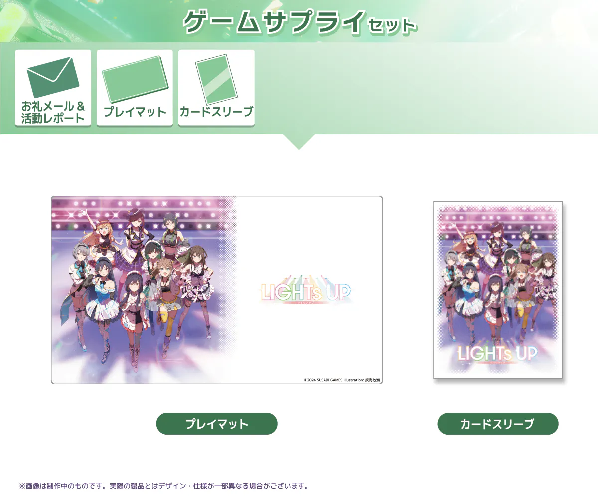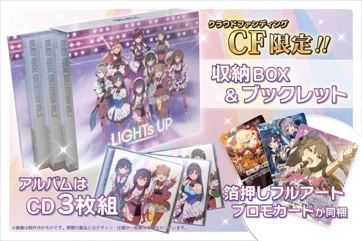 そして、今回のクラウドファンディングでは、アイドルたちの"はじまり"を描くCDアルバム『LIGHTs UP』、および、プロデューサーである"あなた"がアイドルたちと一緒に夢を追うためのオリジナルグッズを制作します。
