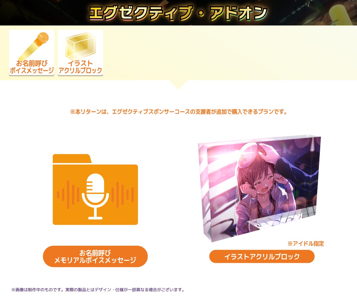 アイドルアライブのスポンサー求む!「エグゼクティブスポンサーコース」は、豪華リターンの最も特別なコースです。