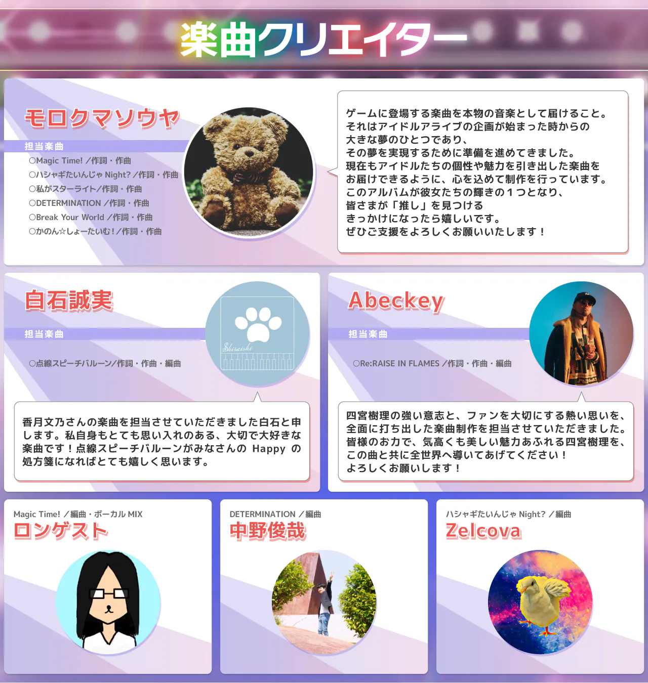 各アイドルのライブシーンのチェキです。ウラ面にはそれぞれのアイドルからのメッセージが書かれています。