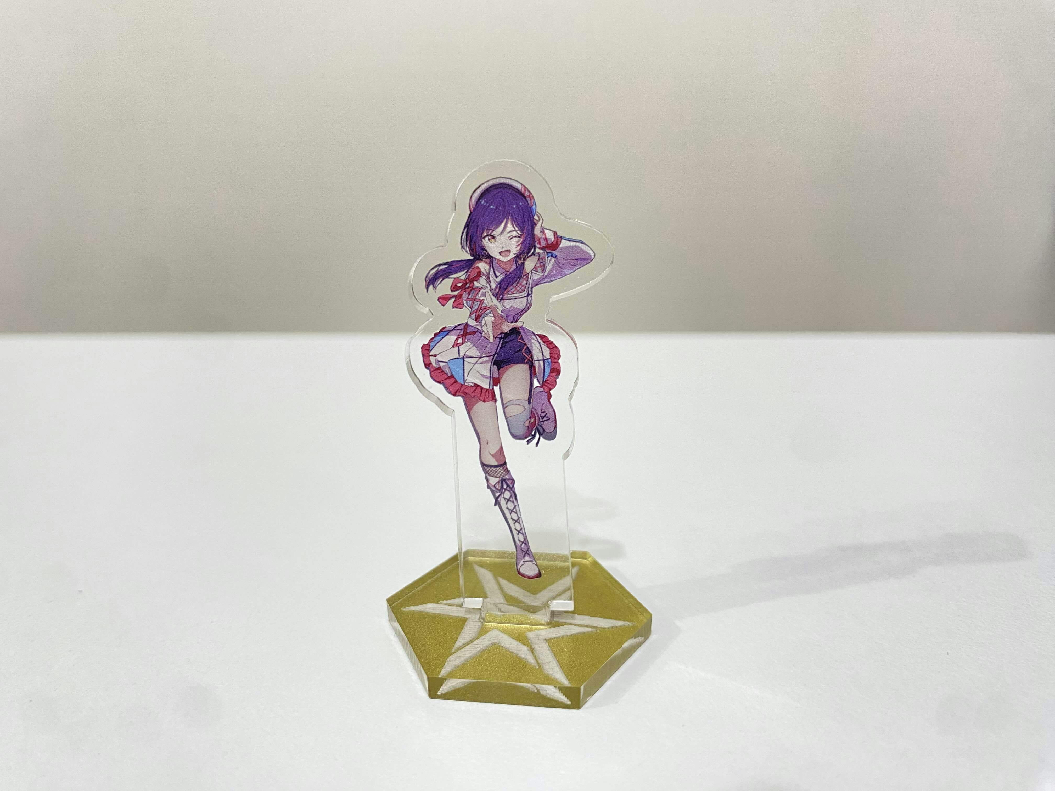 金のアクリル台座はゲームで使えるアクリル駒(別売り)に使用することができますので、ぜひこの台座を使ってステージで推しを輝かせてください!