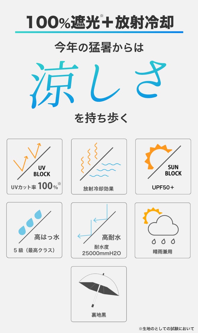 ※2 生地の性能であり、傘本体の性能ではありません。