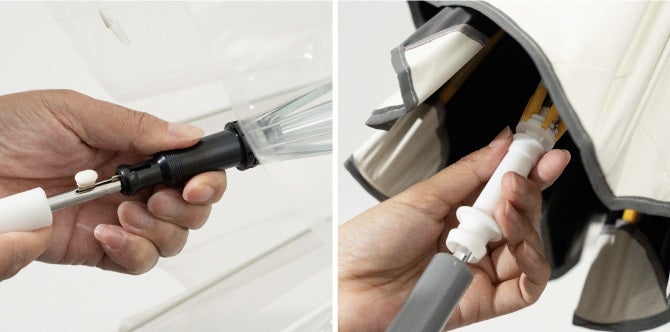 ・ 保管する際は、中棒を伸ばした状態ではなく、手元に格納した状態で保管してください。中棒が伸びた状態のまま保管すると、製品の劣化につながる可能性があります。
