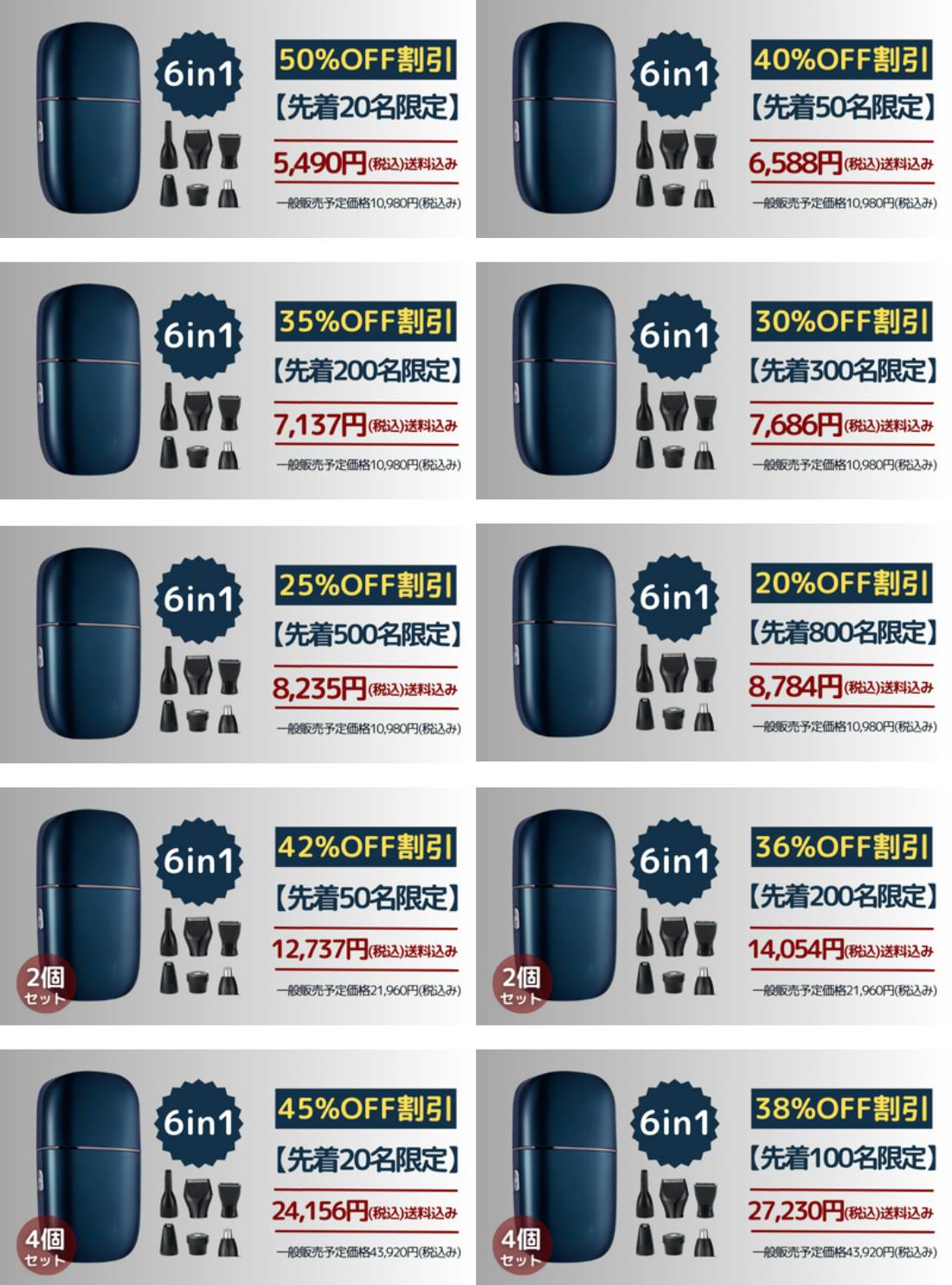 アタッチメント:6種類(髭・眉毛・鼻毛・ボディ・頭髪・脚用)