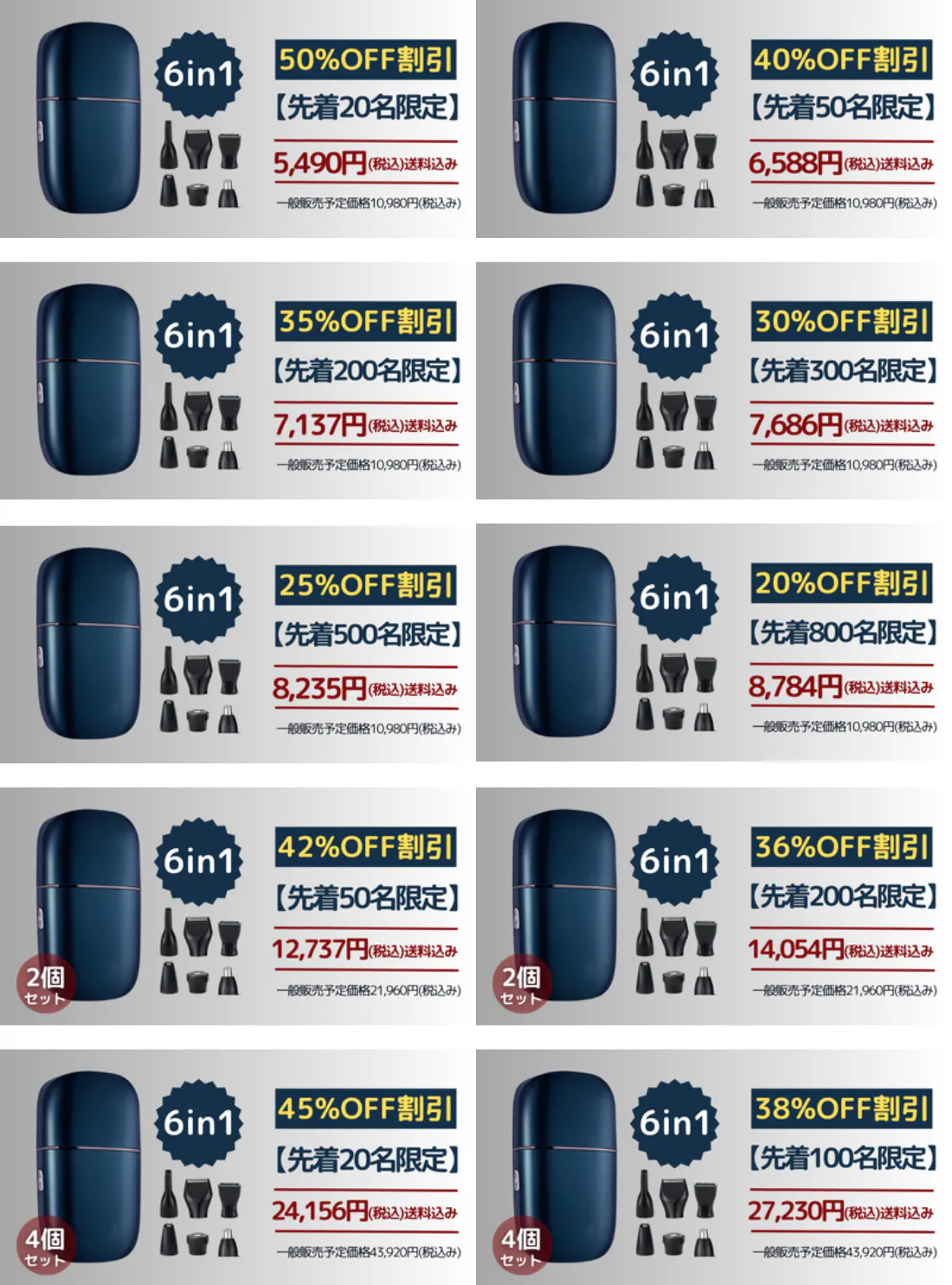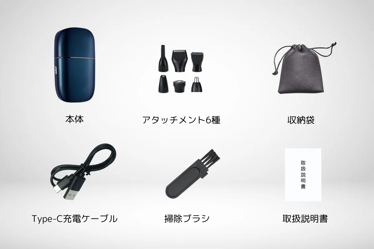 アタッチメント:6種類(髭・眉毛・鼻毛・ボディ・頭髪・脚用)