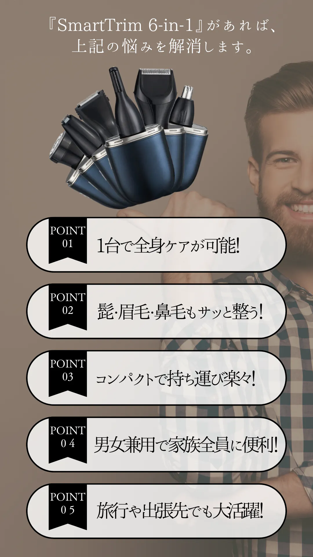 私たちは、日々の生活をより快適にするための製品をお届けすることを目指しており、今回のクラウドファンディングでは「多機能電動シェーバー『SmartTrim 6-in-1』」を起案いたしました。