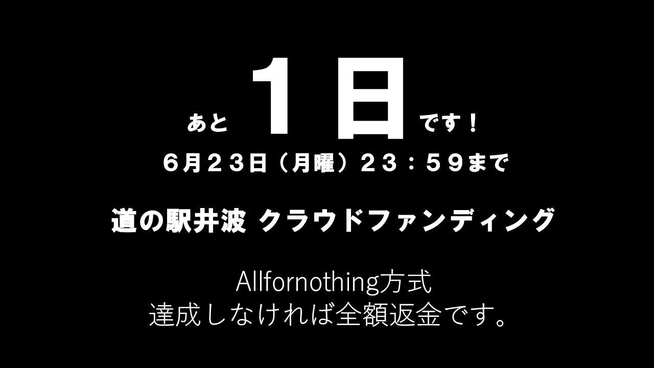 深夜に失礼いたします。初のクラファンが終了しました。今まで支えてくれた皆様。ありがとうございました!!!このクラファンが達成しなければ「廃館」も検討しますと最初にお伝えしました。もちろん今後は廃館も検討しつつの営業になります。しかし、僕にはまだやりたいことや成し遂げたいことがたくさんあります。まだまだ皆さんに楽しんでいただける道の駅を作るために頑張っていきたいです。何度も言いましたが本当にいい経験になりました。ありがとうございます。またチャレンジすることもあると思います!!その時は、よろしくお願い致します!!また逢う日まで。駅長 江尻