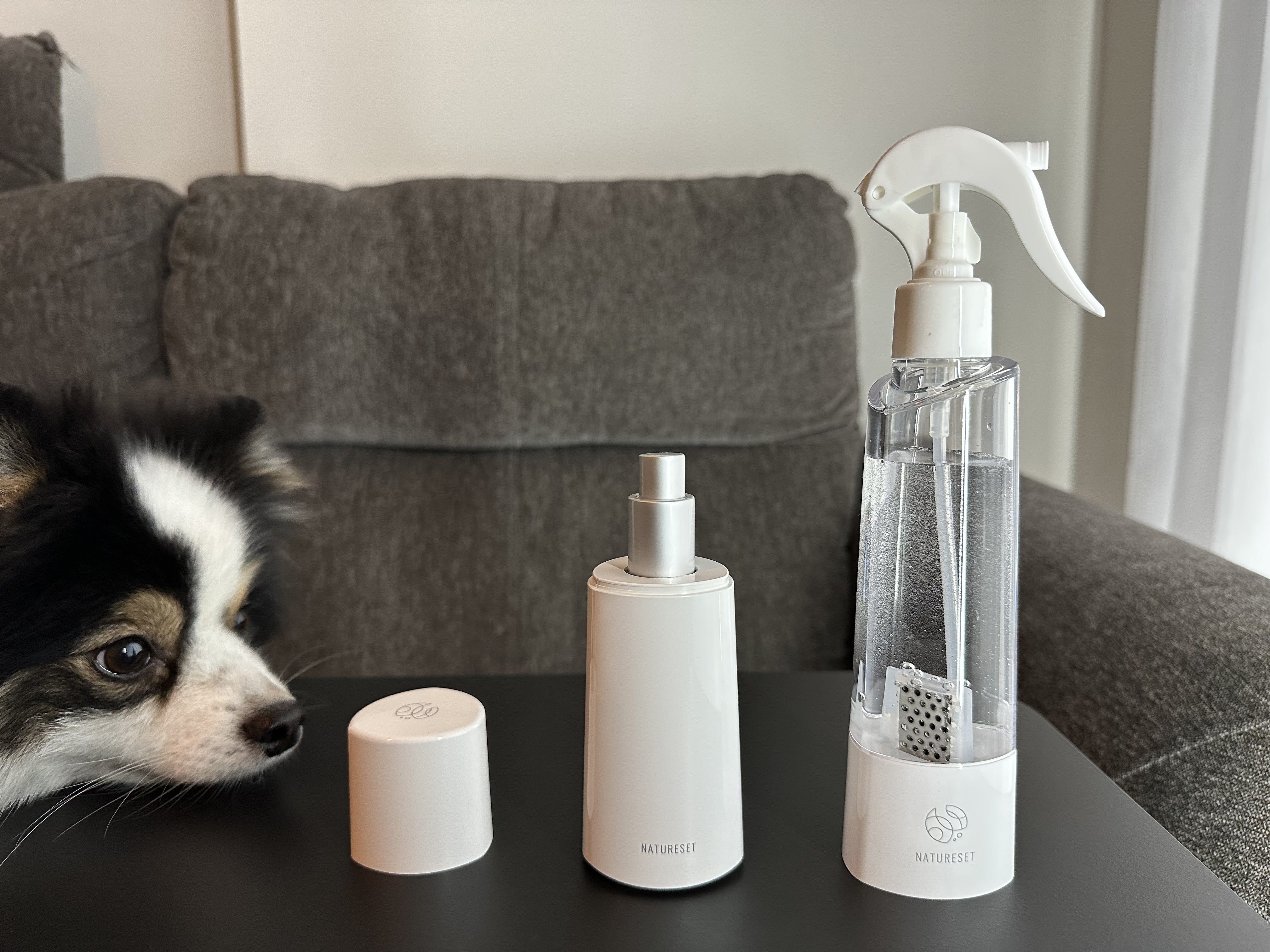 ナノバブルの技術で「ナノサイズの泡」に閉じ込め「ナノバブル×オゾン」なる使い切りタイプのオゾン水スプレーが、ペット向けに除菌・消臭・皮ふ・粘膜・炎症ケア用品として販売されていてとても好評です。
