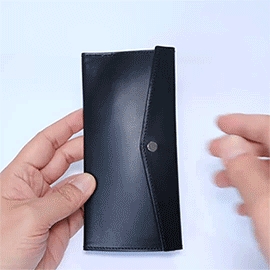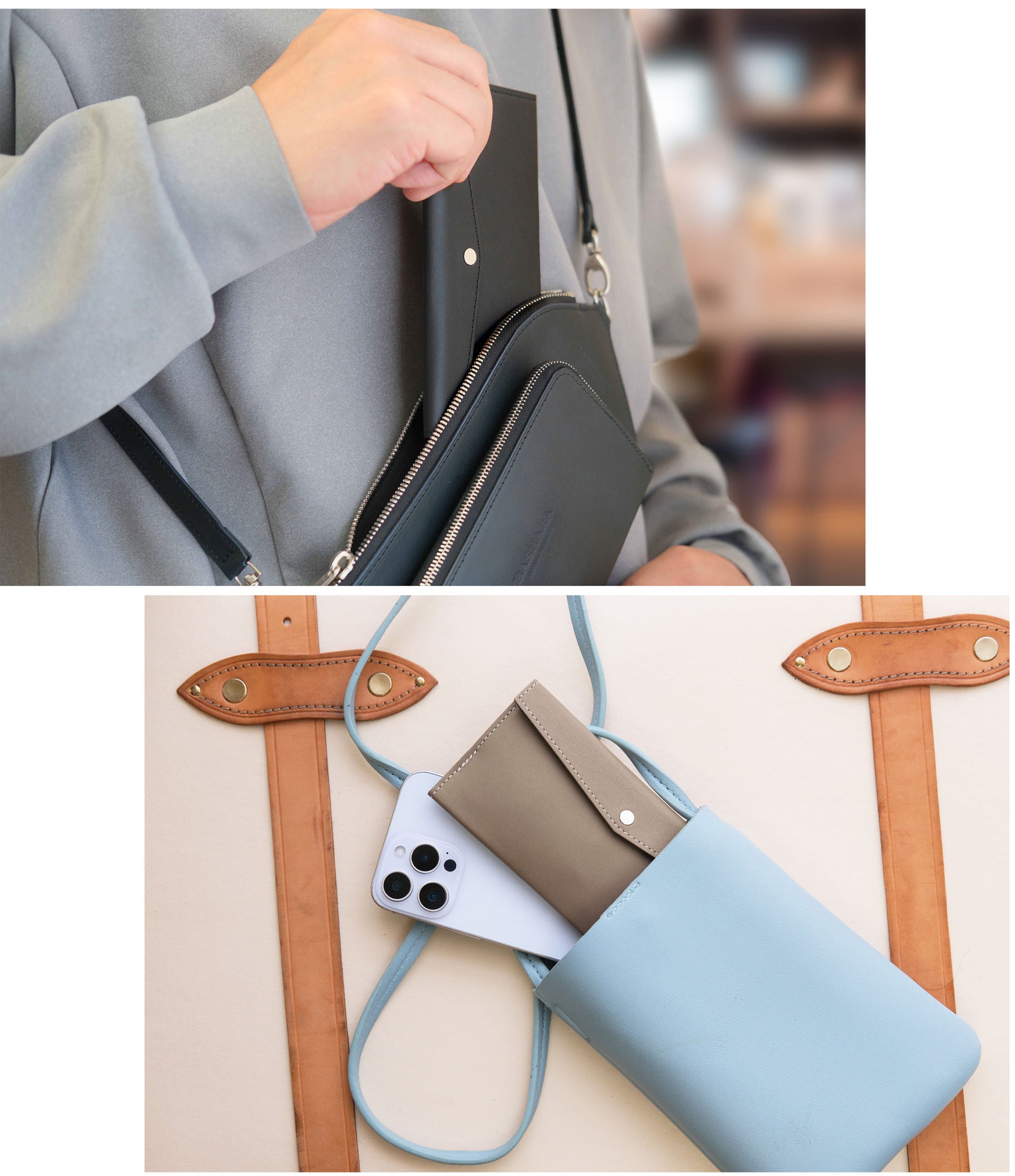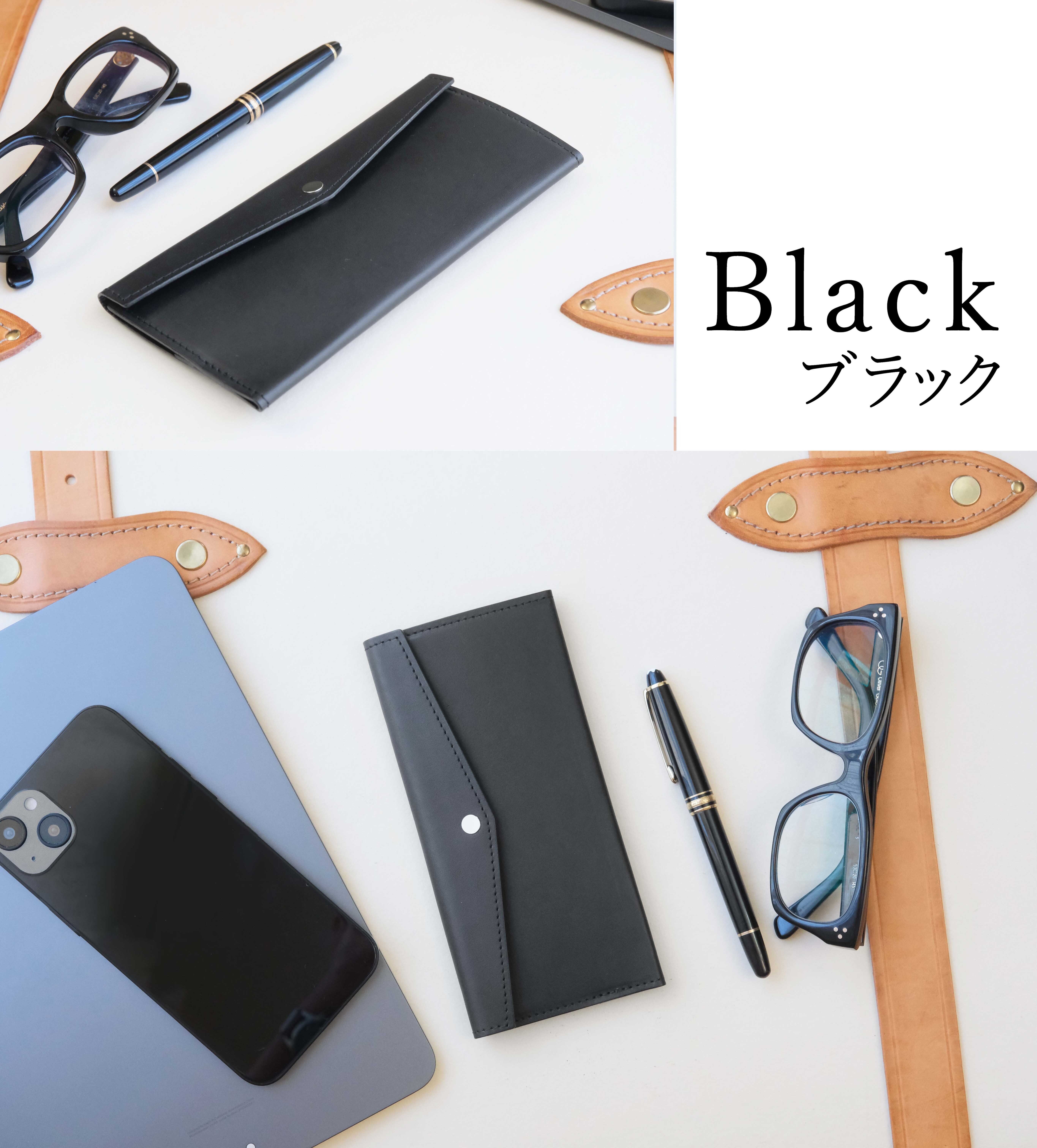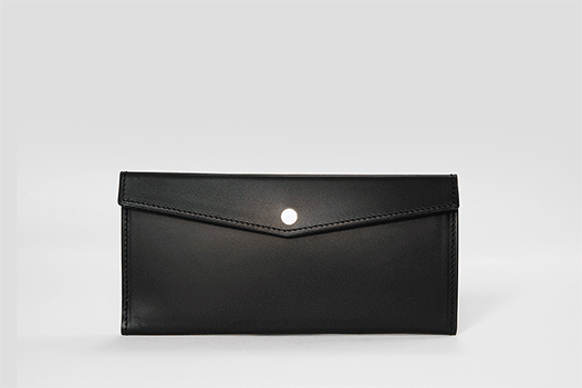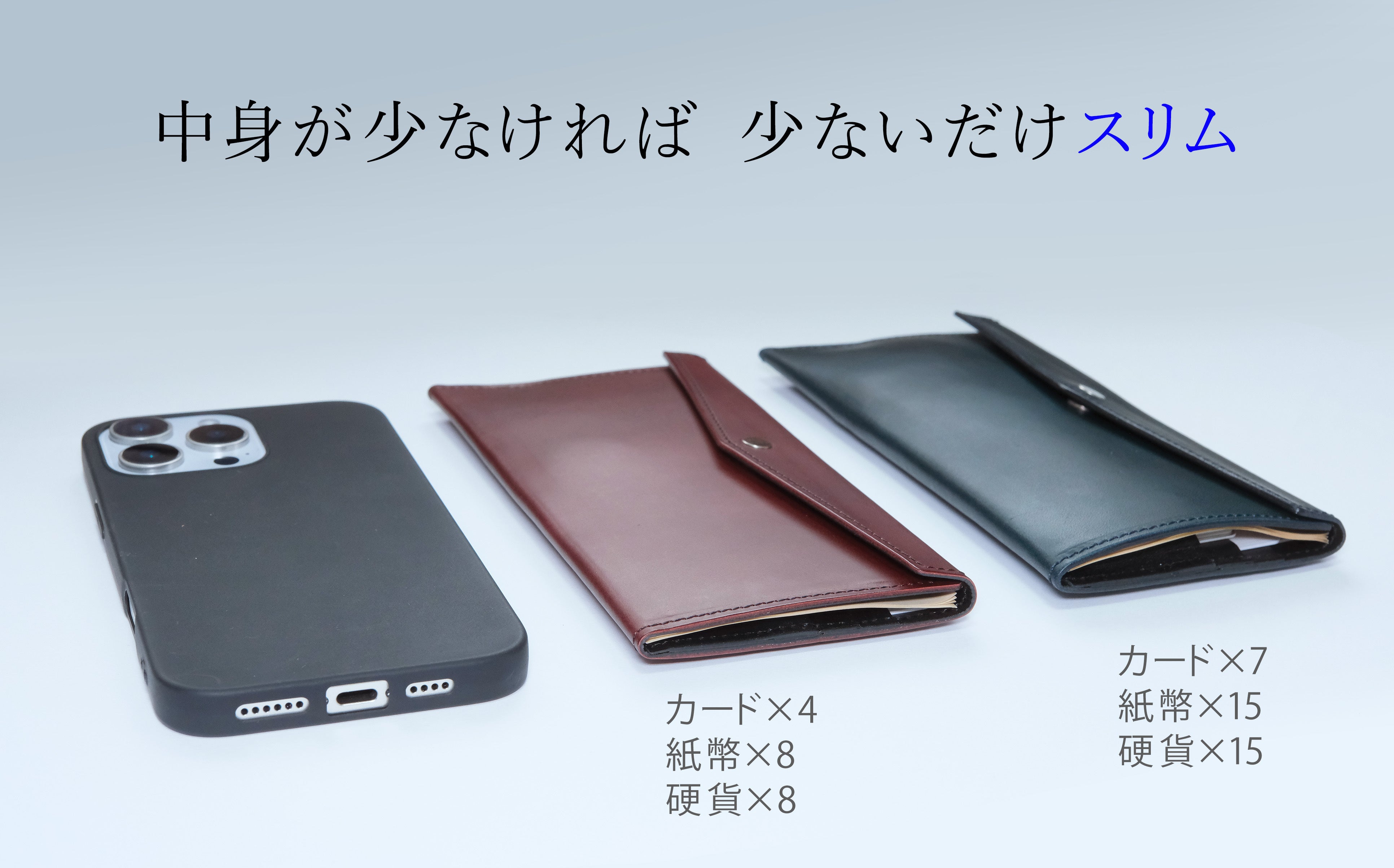 ファスナータイプやボックス型の財布と違い、封筒のように平面のデザインだから、中身が少なければ少ないだけスリムに。
