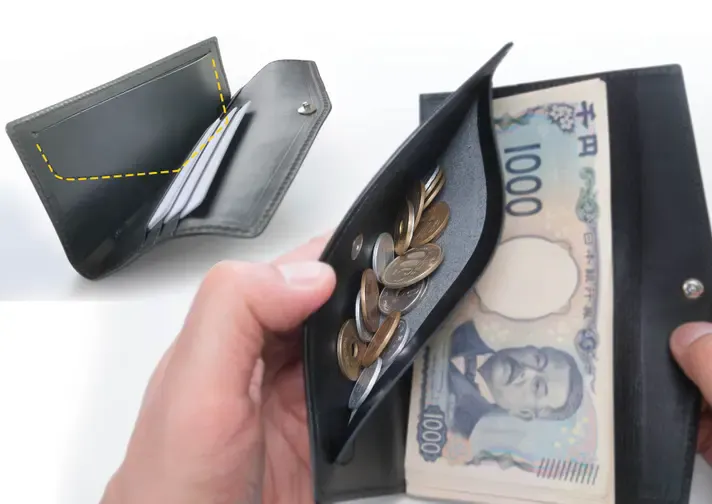 A・お札を収納する際は財布の奥までしっかり差し込んでもらえれば一般的な使用で落ちることはございません。SpilimLsは収納されたカードや硬貨等で紙幣を挟む構造です。カードや小銭をほとんど入れないでご使用になる場合は挟む力が弱くなるため、【サブポケット】に硬貨やその他の物を入れてご使用ください。