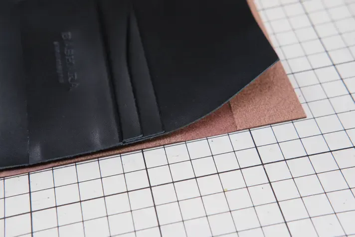この2枚の革を全面張り合わせることで、薄くても張りのある1枚の革に仕上がります。