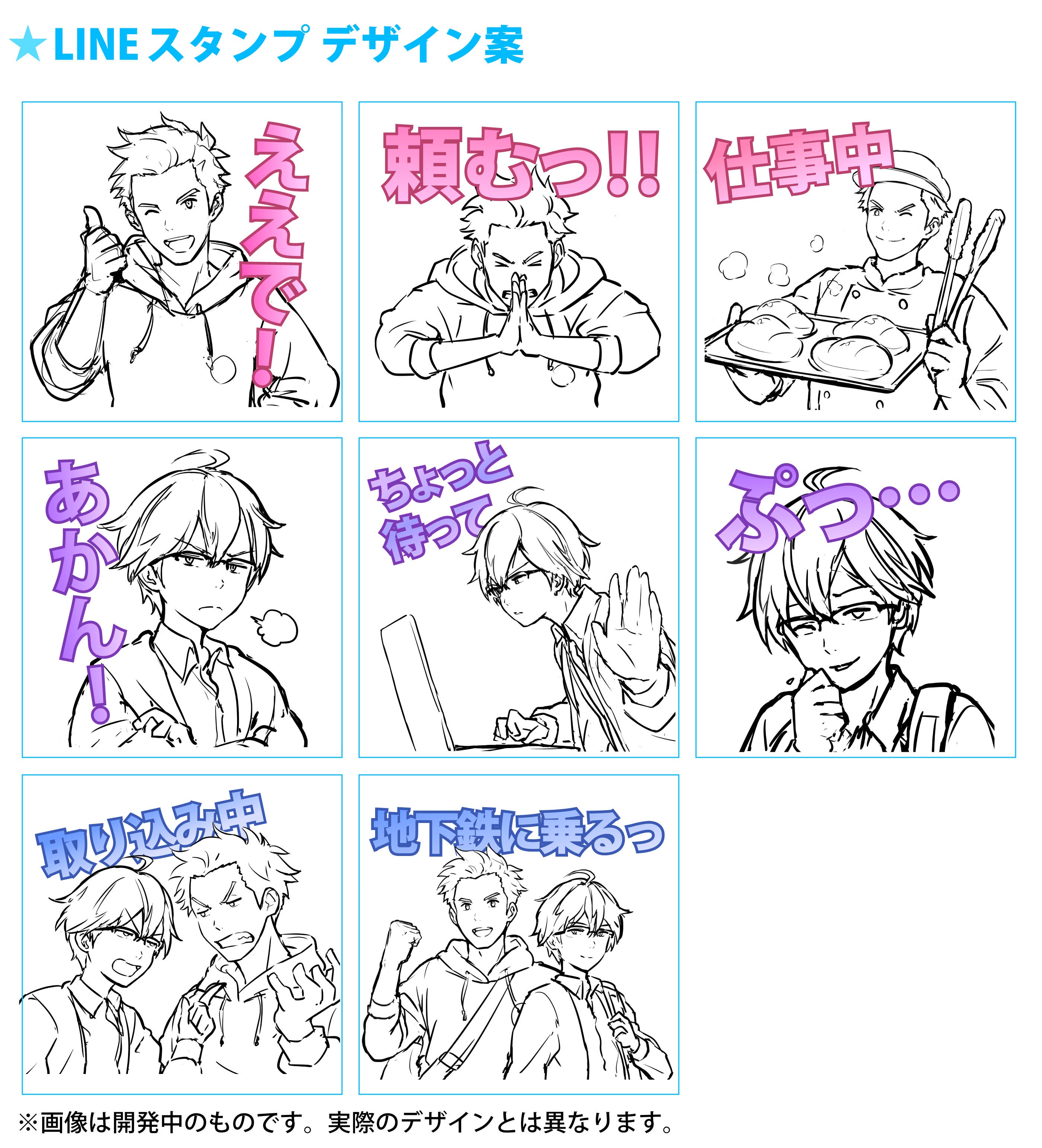 制作するLINEスタンプイメージ。※全40種の予定です。