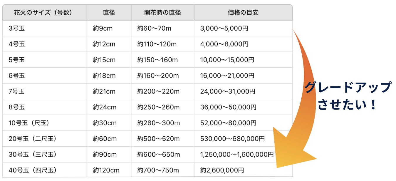 約10万円で、直径300mに広がる尺玉を1発購入可能!