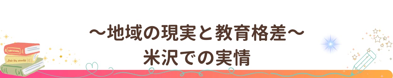 現在では、コロナ禍で、ICT教育が始まりましたが、未だ上手な活用ができていないように感じます。子供たちにタブレット学習をさせるのみに留まり、全く授業がなされていない学校も出てきました。さらに、米沢では高校生が高校3年生から化学や物理の授業を始めるため、最後まで授業が受けられずに、入試を迎えたり、他教科に関しても過去問を解く量が不十分な現実があります。これらは、首都圏と比べたときの大きな教育格差を痛感させるものでした。さらに、地方では少子化でもありますが、学校の先生が不足し、教育現場での労働環境も厳しいのが現実です。多忙な先生たちは、長時間労働や過重な負担にさらされ、その結果、子どもたちに十分な指導が行き届かない状況が続いています。こうした現場の厳しい現実が、地方の教育の質に影響を与え、子供たちの未来にも深刻な差を生んでいるのです。