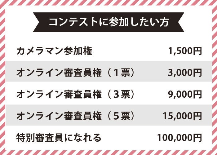 ●応募方法:当クラウドファンディングで「カメラマン権(1,500円)」をご支援いただく事で、カメラマンとしてコンテストにご参加いただけます。