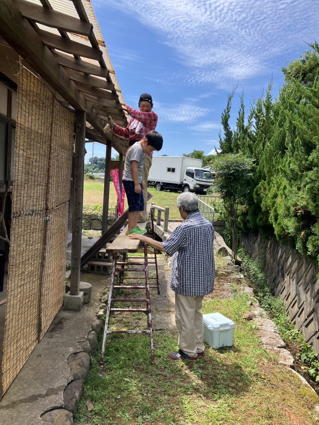 はじめまして!私は過疎地の空き家を活用し蕎麦屋開店を目指している代表の清水です(写真中央)