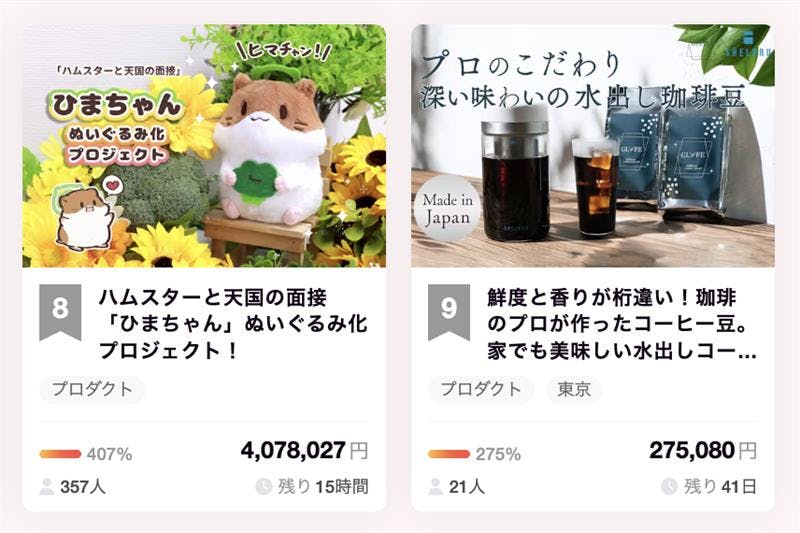 また本日のCampfireランキングプロダクト部門で 9 位に入賞することが出来ました!