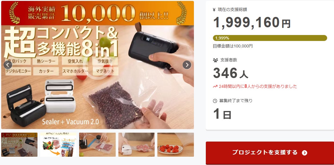 Sealer Vacuum 2.0はサイズ100x60x50mm、重さはわずか217g。これは一般的な真空パック機の約1/10のサイズです。