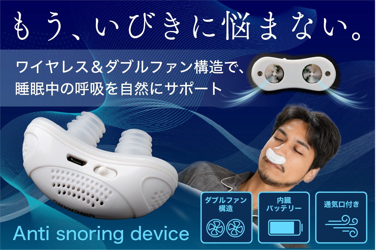 ワイヤレス&ダブルファン構造で睡眠中の呼吸を自然にサポート【いびきデバイス】