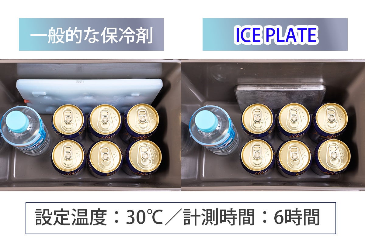 一般的な保冷剤とICE PLATEで6時間経過した時のクーラーボックス内の保冷温度を実際に比較実験してみました。