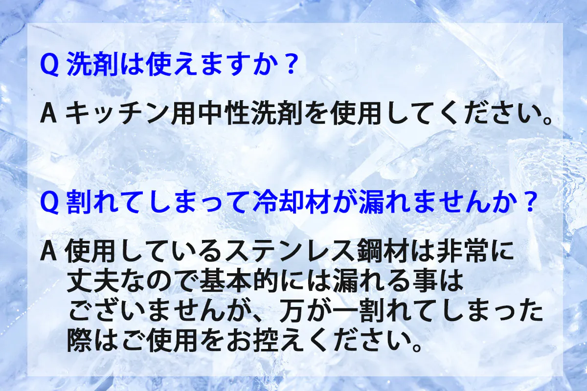 凍結速度は従来のプラスチック製保冷材よりも速いのが大きな特徴です!