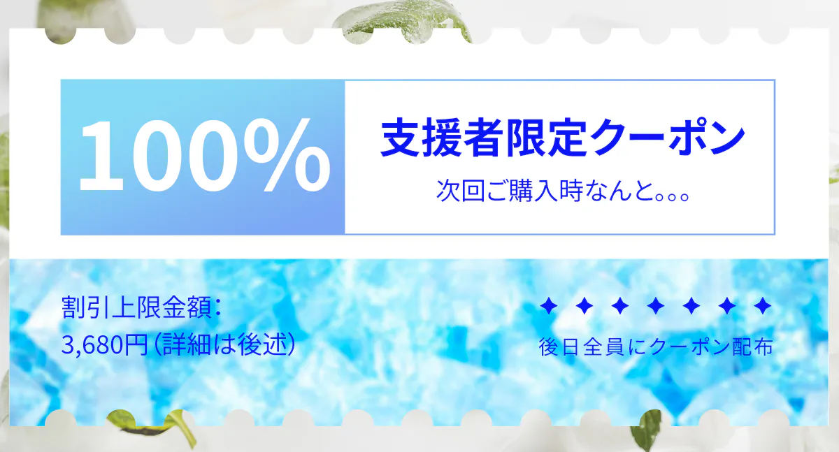 ※支援者様へのクーポン送付時に明記させていただきますので、ご安心ください。