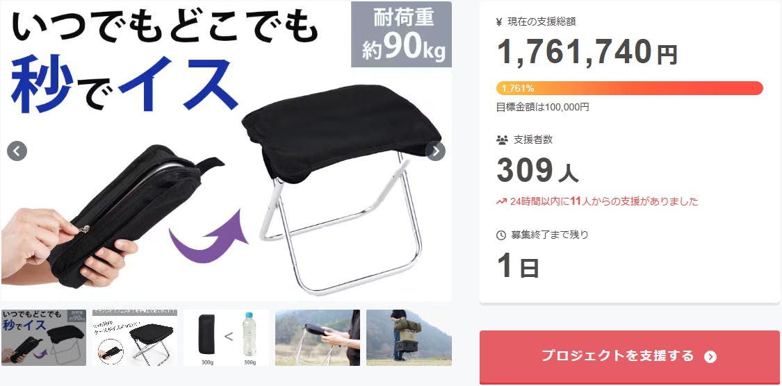 お陰様で、開始から10万円の目標金額を1700%達成することができました。