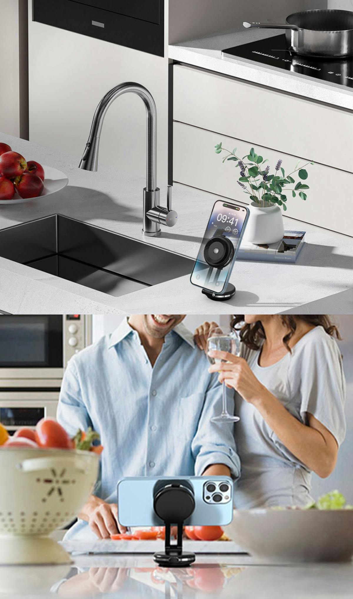 鏡にも設置可能なのでドライヤーや歯磨き、セットやメイクをしながら動画を見ることも!