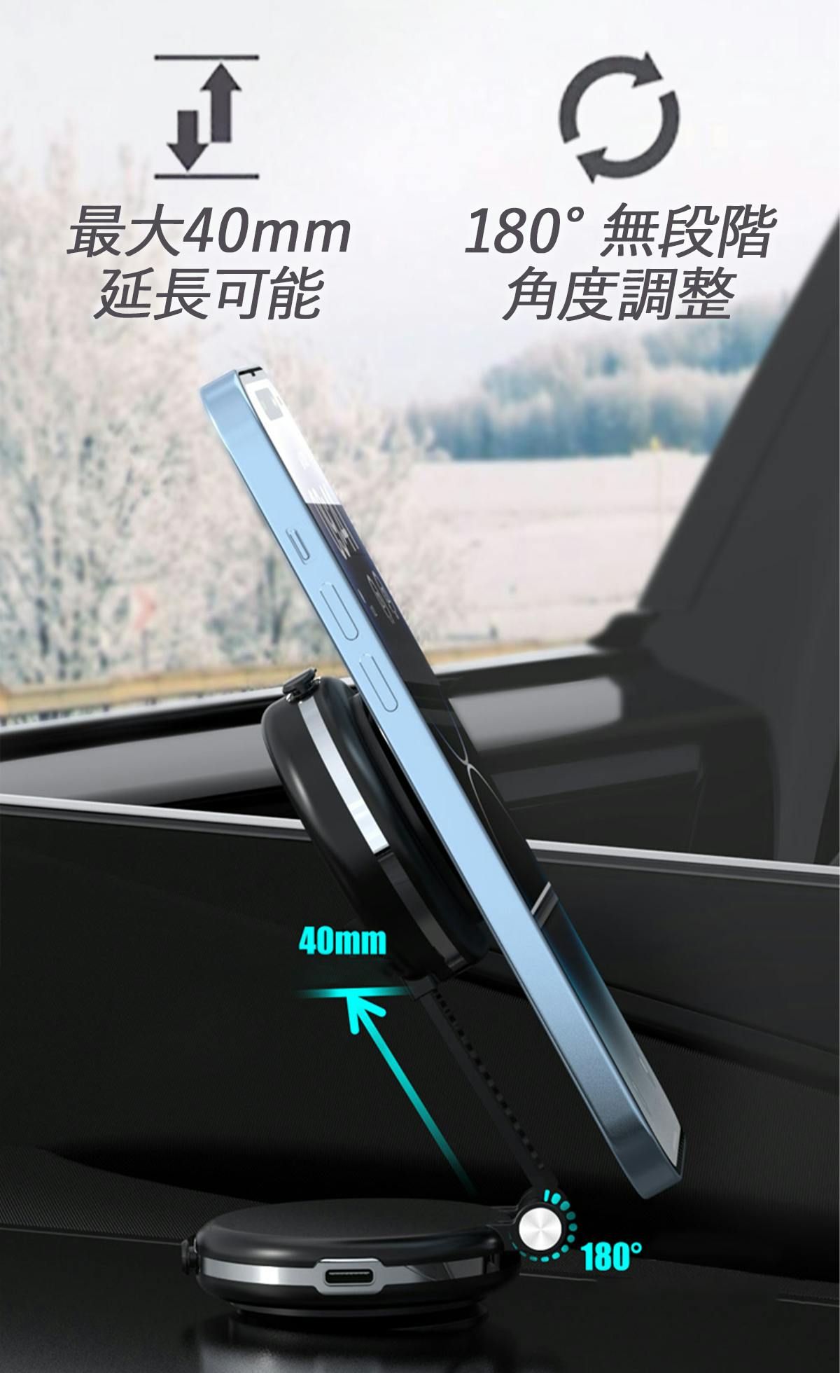 ホルダー本体にUSBケーブルを接続することでワイヤレス充電が可能です。