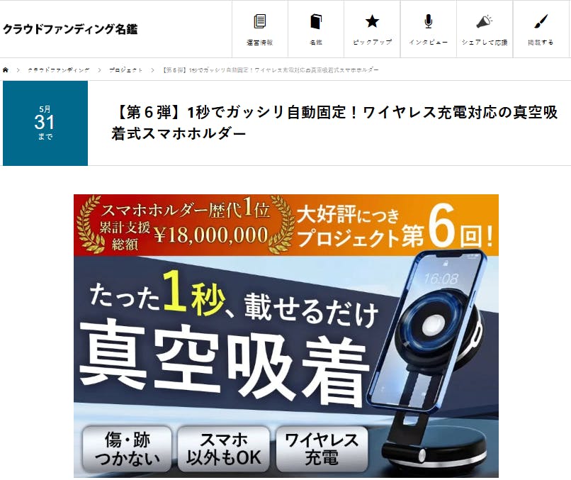〈スマホホルダー「Vacuum Pro」第6回クラファン開始!