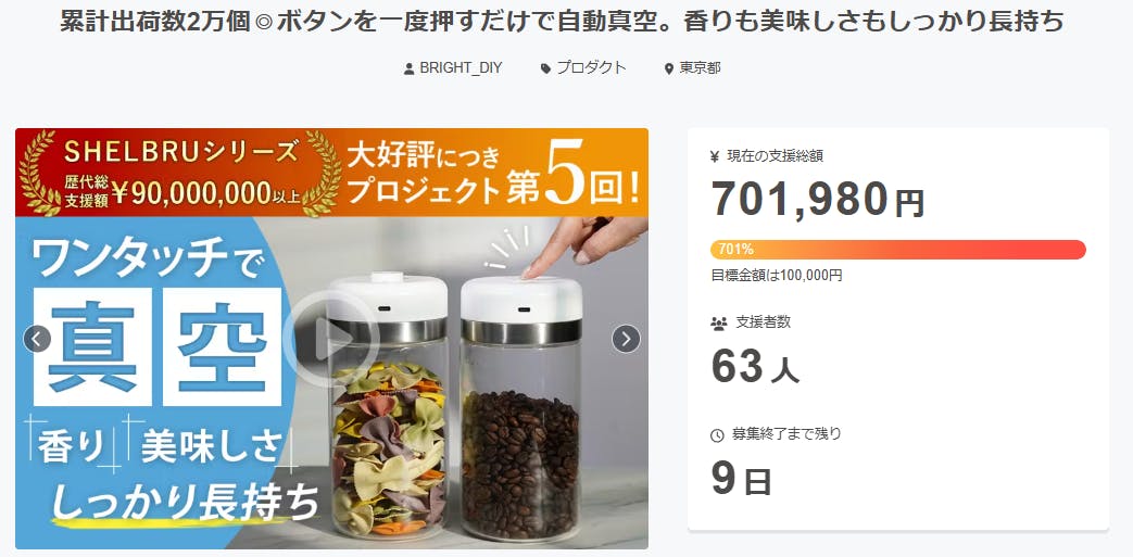 この度は「累計出荷数2万個◎ボタンを一度押すだけで自動真空。香りも美味しさもしっかり長持ち」に支援 頂き誠にありがとうございます!