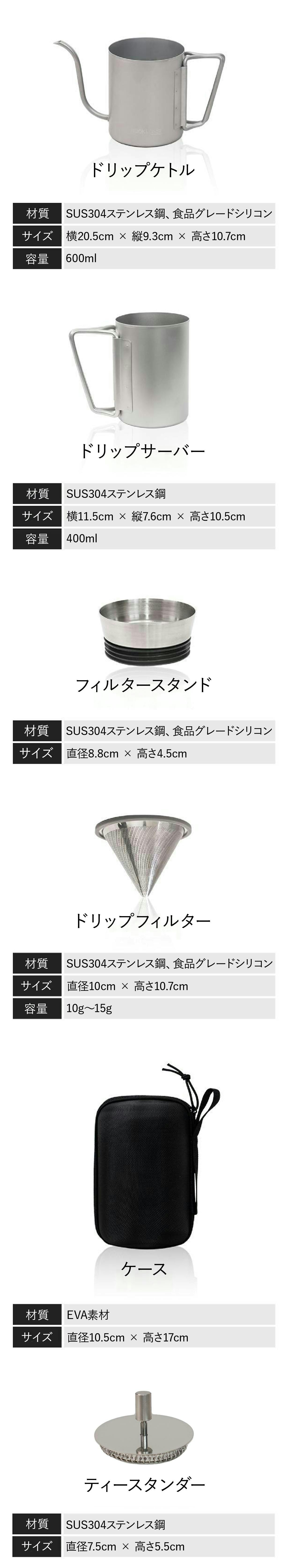 そこで出会ったのがこのOutdoor Drip Setでした。どこに行くときも場所を取らず、全てが一つのケースに入っているので、忘れ物もしない。コーヒーに力を入れている商品ですが、お茶も美味しく飲めて、期待以上の結果を出してくれる商品です。