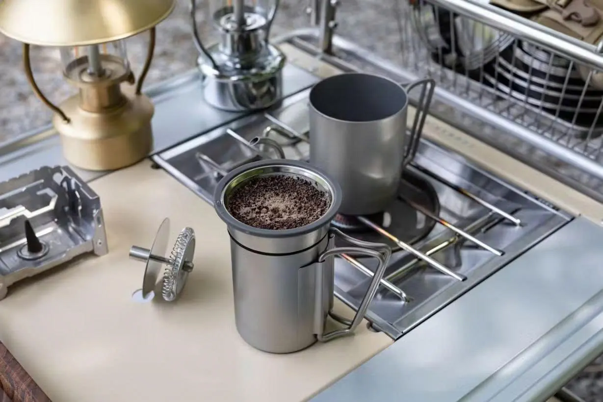 さらに、Outdoor Drip Setは見た目以上に多機能です。ドリップコーヒーはもちろん、細い注ぎ口を活用して、お茶やミニラーメンの調理にも使うことができます。直火対応の設計により、どんな場所でも自由にお湯を注ぐことができ、様々なシーンで活躍します。コーヒー好きな方はもちろん、アウトドアを楽しむすべての方に、このドリップセットは一度使ってみていただきたいアイテムです。
