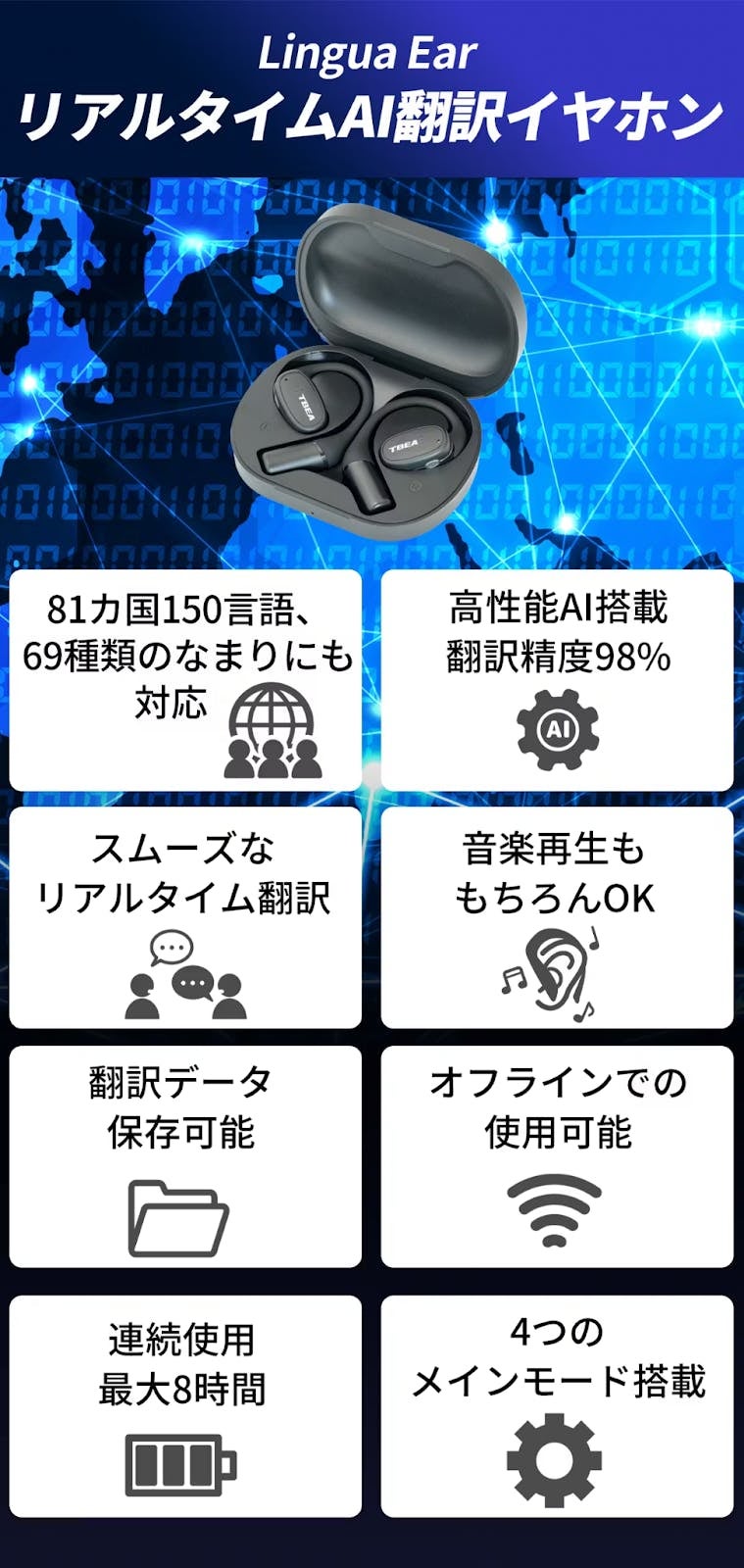 150言語を瞬時にAI翻訳!語学要らずでリアルタイムに会話ができる翻訳イヤホン!