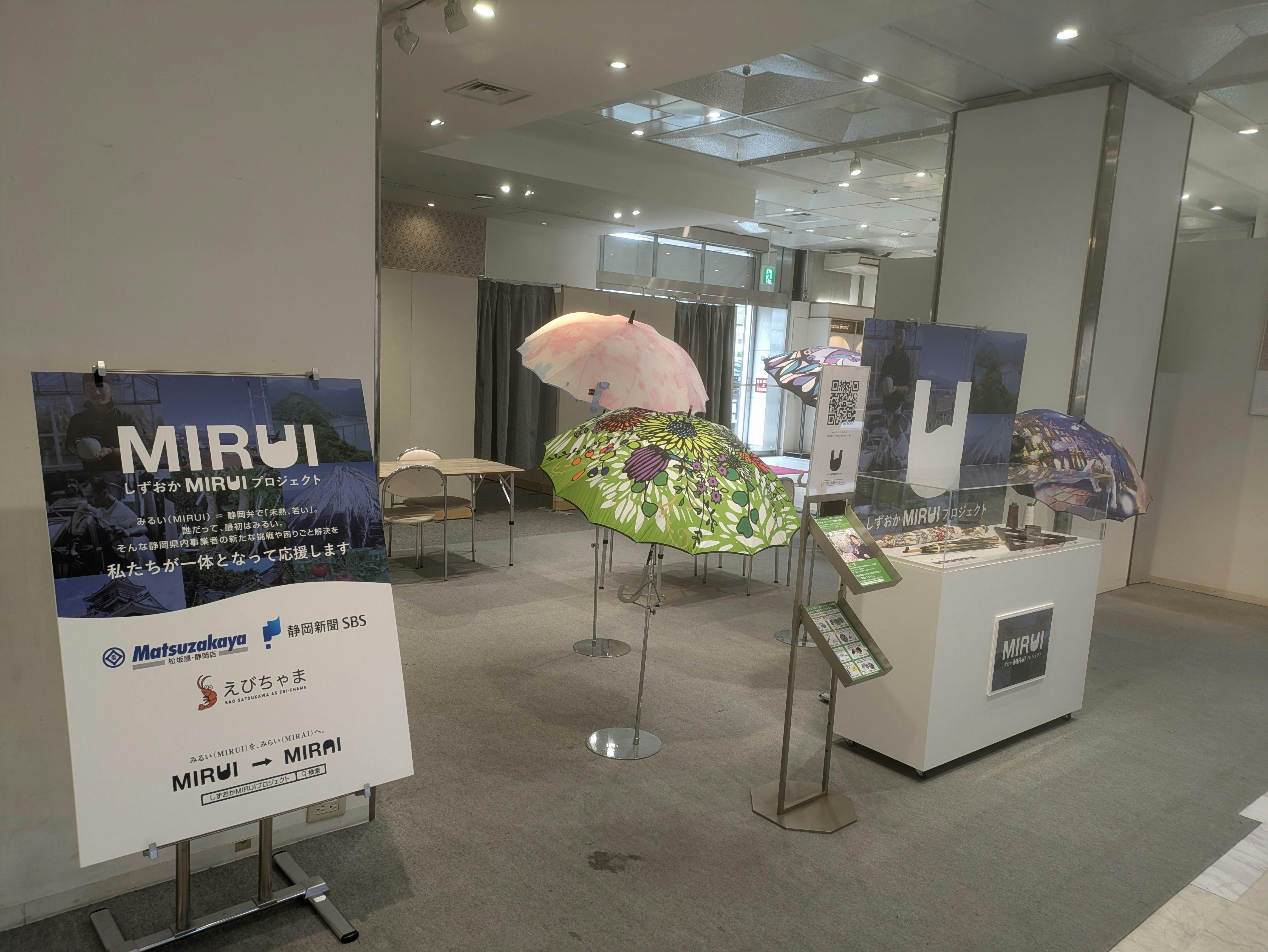 クラウドファンディングの掲載期間中、松坂屋静岡店様 本館1Fブースにて、弊社の傘を展示していただいております!(※2025年5月1日時点)