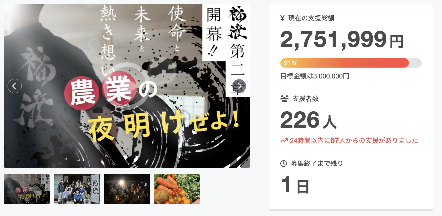 なんとこの24時間で67人もの方々からご支援いただきました!