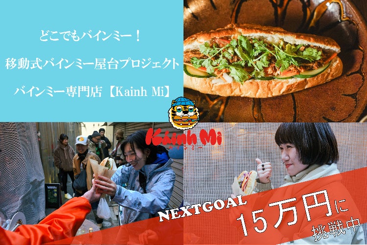 2025/03/10 13:03こんにちは!カインミーのカイです!【どこでもバインミー!移動式バインミー屋台プロジェクト】クラウドファンディングが本日からスタートしました!1日目から早々にご支援くださった方々、本当にありがとうございます。嬉しい限りです。。目標金額は8万円で、期間は3/31までです!最後まで頑張って駆け抜けますので、ご支援どうぞよろしくお願い致します。 もっと見る