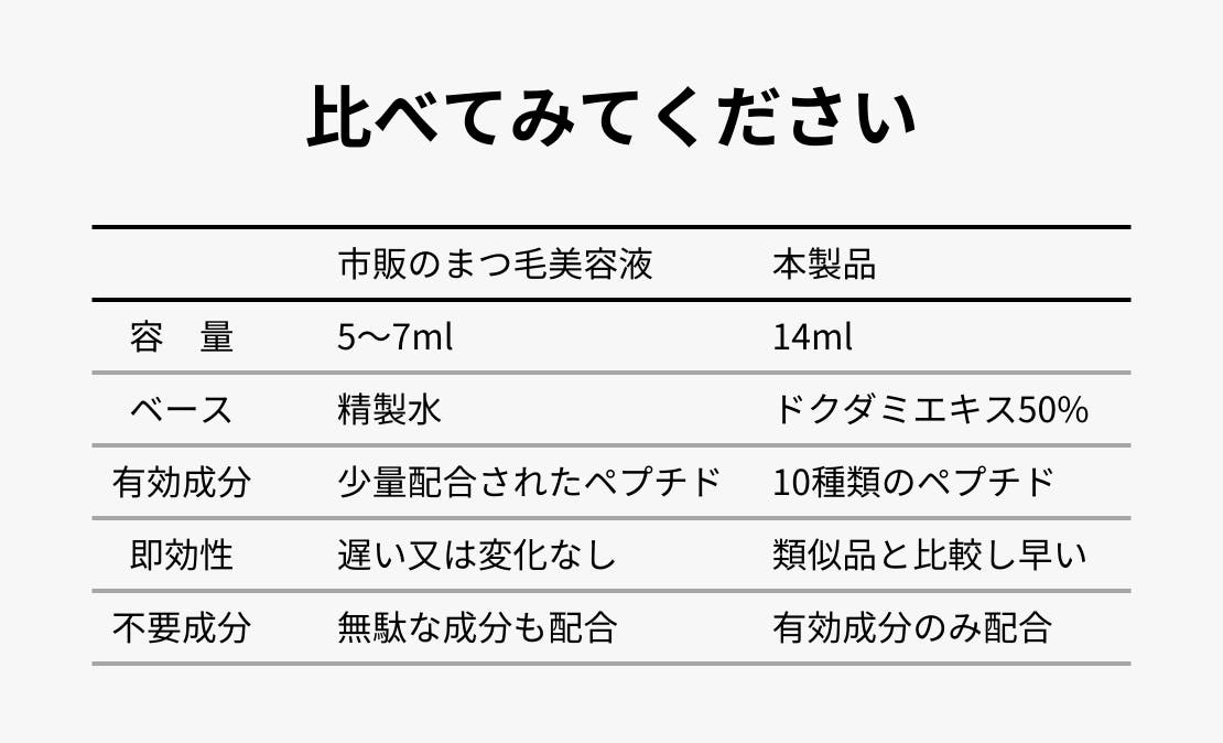 市場に多くの化粧品が出回る中、水をベースに入れ、美容成分をわずかに入れ、余分な成分で使用感を誤魔化すことで価格を下げ、安く大量に販売することでお客様が体験する効果より企業としての売り上げを追求するような商品が多く流通しています。しかし、私たちはとことんお客様の感動を考え尽くした処方を実現しました。