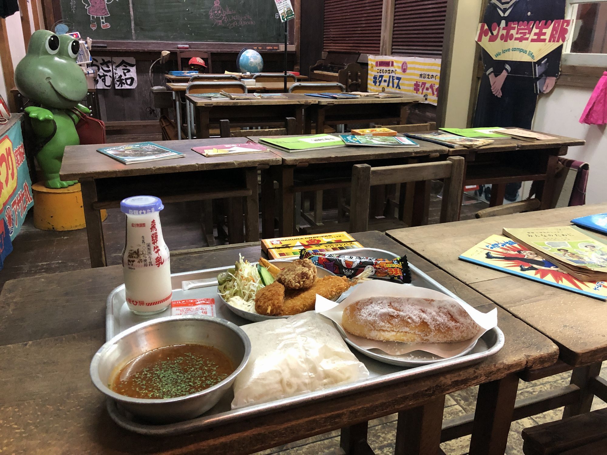 その後、自分のコレクションや高山で知り合ったコレクターさんのご協力や建設時から加入した従業員と一緒に、若い世代に楽しんで貰える「飛騨高山レトロミュージアム」を2018年11月に作りオープン。スバル360、ミゼットなどの旧車の展示や壁を埋め尽くす数多くの琺瑯看板や昭和のポスター。館内では綿菓子作り体験やレトロな体験などを楽しみながら、蔵の中にできた昭和の街を散策しながら写真撮影など。小学校を再現した教室では、あげぱん・ソフト麺・ミルメーク+牛乳・アジフライ・クジラの竜田揚げなど当時の給食を再現し、たちまち人気の施設となりました。