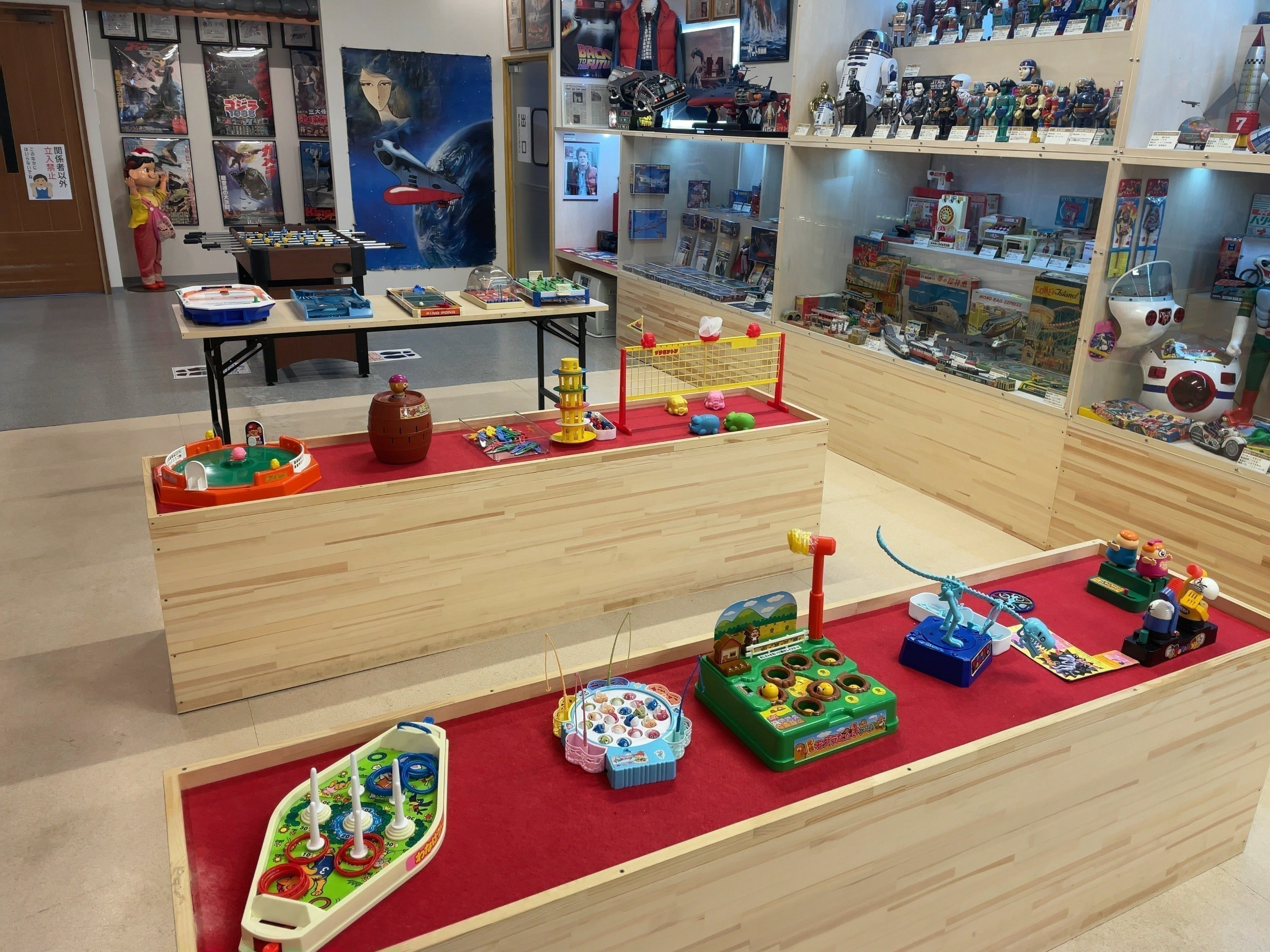 地元の大工さんや電気屋さん、看板屋さんなどのご協力を得て、わずか2か月ほどで完成することが出来、2023年12月8日にオープンに至りました。当初はブリキのオモチャ展示がメインで、見るだけでは楽しめない事から、子供にとっては初めて見るようなアナログなオモチャ、大人にとっては自分が子供の頃に買ってもらったり、遊んでいた懐かしいオモチャで遊べるエリアも併設し、見るだけではなく家族で楽しんで貰う事ができるオモチャの博物館としてオープン致しました。