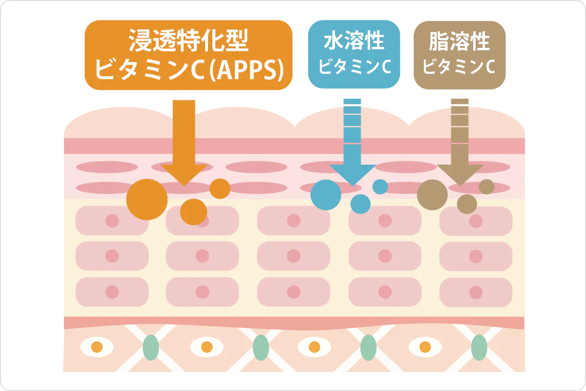 水にも油にもなじみやすく皮膚に入り込みやすいビタミンC(APPS)を高配合。