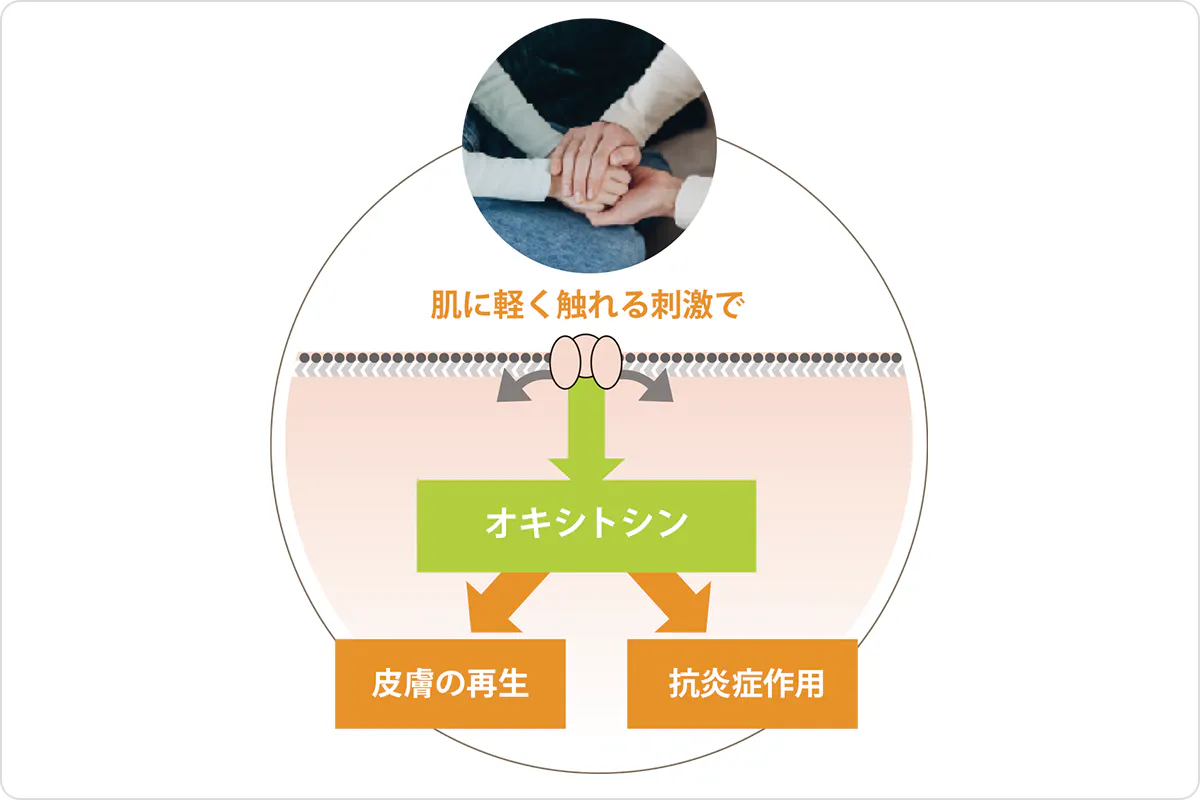 そしてなんと、肌内のオキシトシンは、「肌に軽く触れる刺激」が合成のスイッチ。