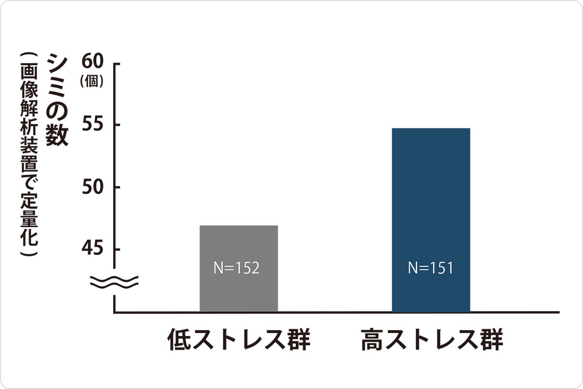 特にびっくりしたのが、ストレスホルモンが多い人の方が、シミの個数が多いということ。