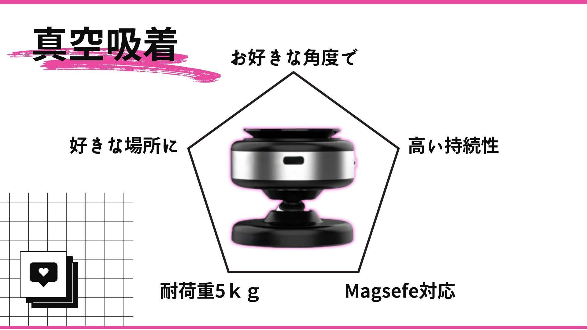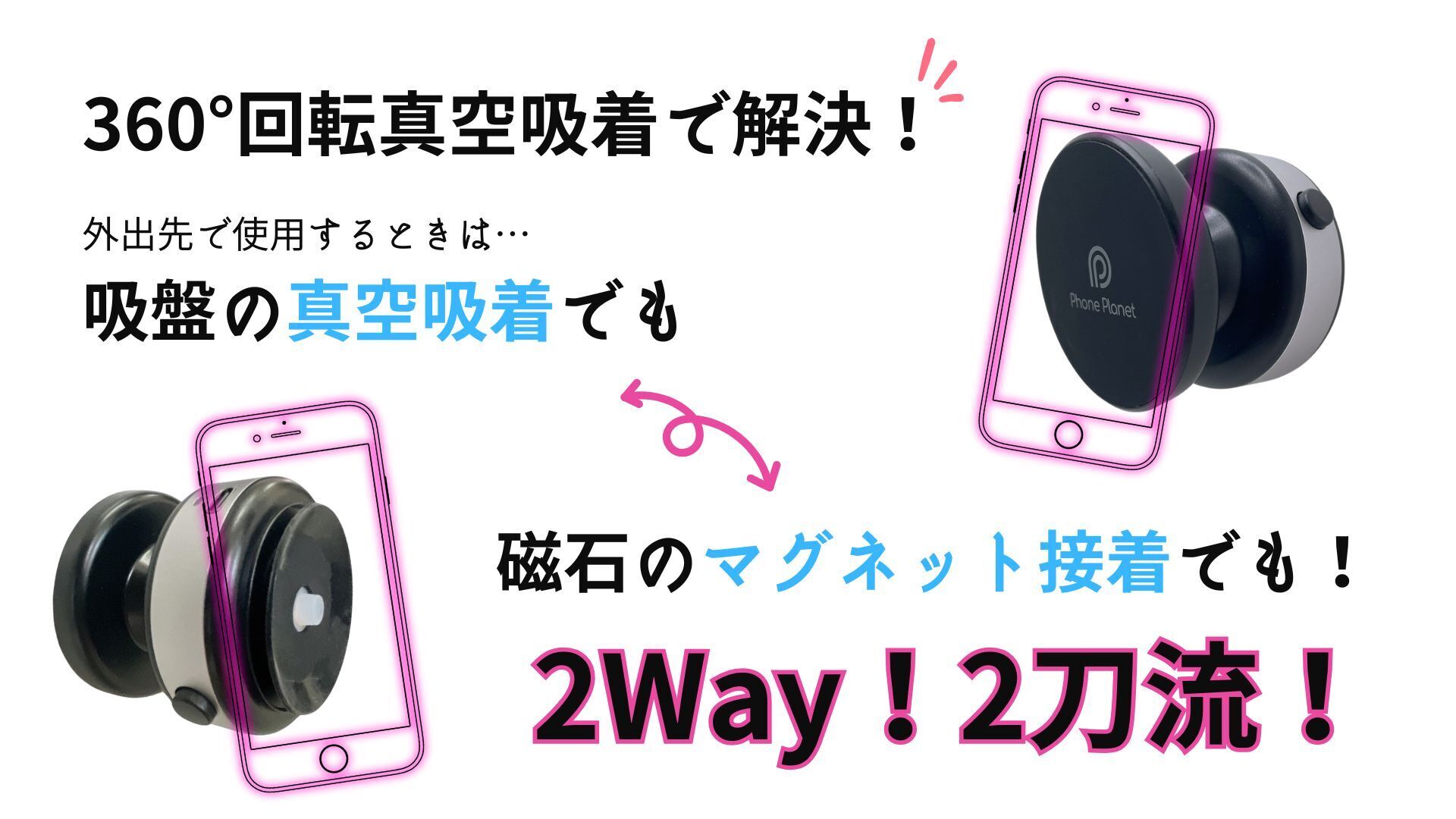 しかし、『PHONE PLANET』は「空気を抜いて吸着する」仕組みを採用しており、吸着力が持続し、長期間安定して使用できます。これにより、平滑な面であればどこでも真空吸着し、360°自由に角度調整が可能!