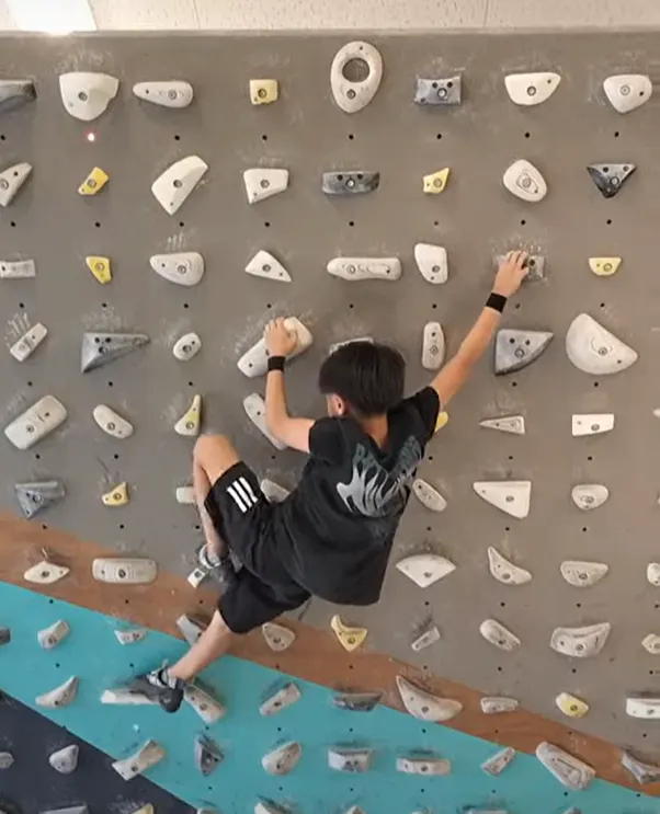 沖縄県でスポーツクライミング(ボルダリング)をしています。小学2年の田中 晴瑠太(はるた)といいます。普段は「ディーボルダリング沖縄豊崎」のキッズスクールに通い練習を重ねています。スクールには6歳の時から通い始め、着々と力をつけ成長しています。